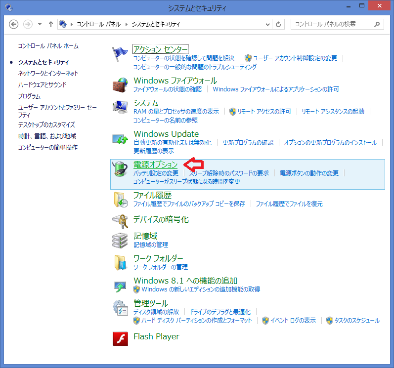 - 「電源オプション」をクリックします。