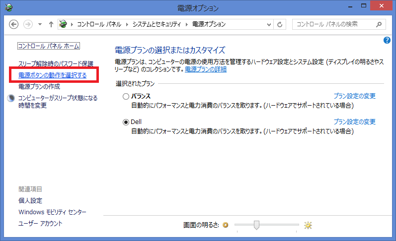 - 左ペインの「電源ボタンの動作を選択する」リンクをクリックします。