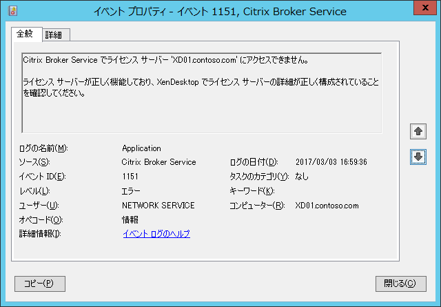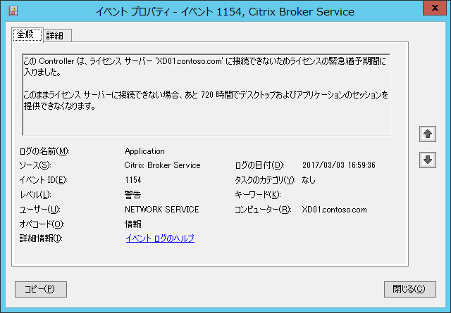 Citrix Licensing の障害時「緊急猶予期間に入ります」を通知する方法