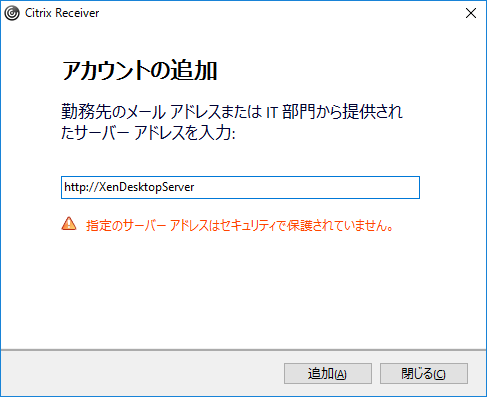 Citrix Receiver はhttpsでの接続を基本にしており、httpでの接続は許可されて下りません。