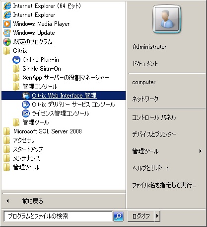 - [WebInterface 管理]を起動する。