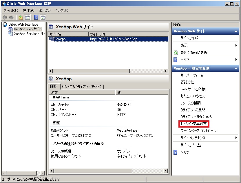 クリックで拡大 - 対象のWebサイトを選択し、「セッション基本管理」をクリックする。