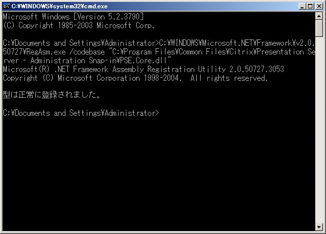 C:\WINDOWS\Microsoft.NET\Framework\v2.0.50727>regasm /codebase "C:\Program Files\Common Files\Citrix\Presentation Server - Administration Snap-in\PSE.Core.dll"
