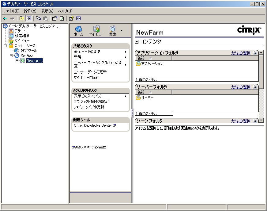 Citrix Access 管理コンソールで「XenApp」スナップインが表示されない