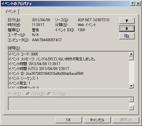 イベント時間 (UTC): 2012/04/09 2:29:17
