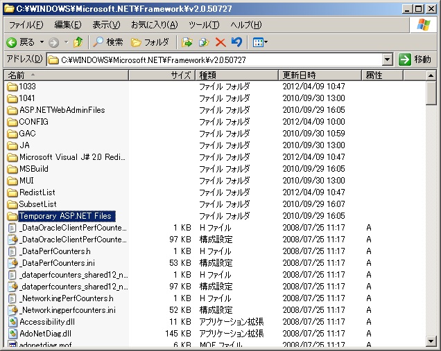 - エクスプローラで「C:\WINDOWS\Microsoft.NET\Framework\v2.0.50727」を開きます。