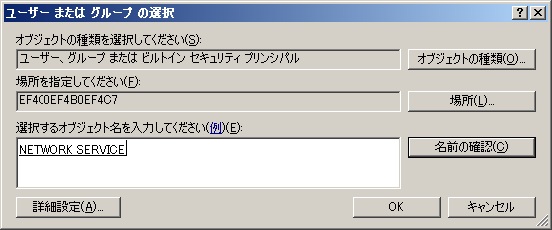 アカウント名: NT AUTHORITY\NETWORK SERVICE