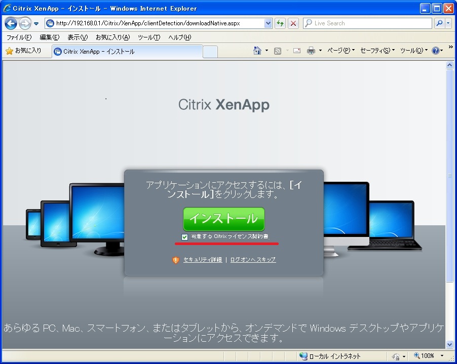 WebInterfaceを利用する端末も「Citrix Receiver Web」を使うようにしたいと思いましたが上記の方法ではダウンロードできるようになりませんでした。