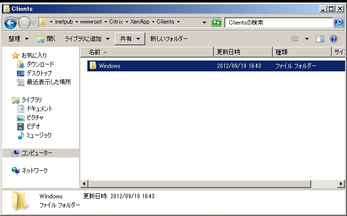 XenApp のインストールメディアか、 My Citrix サイトからダウンロードできます。 - WebInterface サーバーの「C:\inetpub\wwwroot\Citrix\XenApp\Clients」を開く。