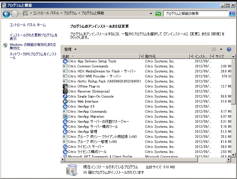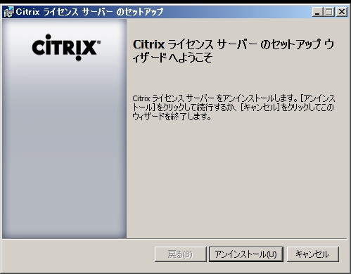- Citrix ライセンスサーバーが2つある状態からのアンインストールを「プログラムのアンインストールまたは確認」画面から行ったところ、その後のインストールを行っても正常になりませんでした。